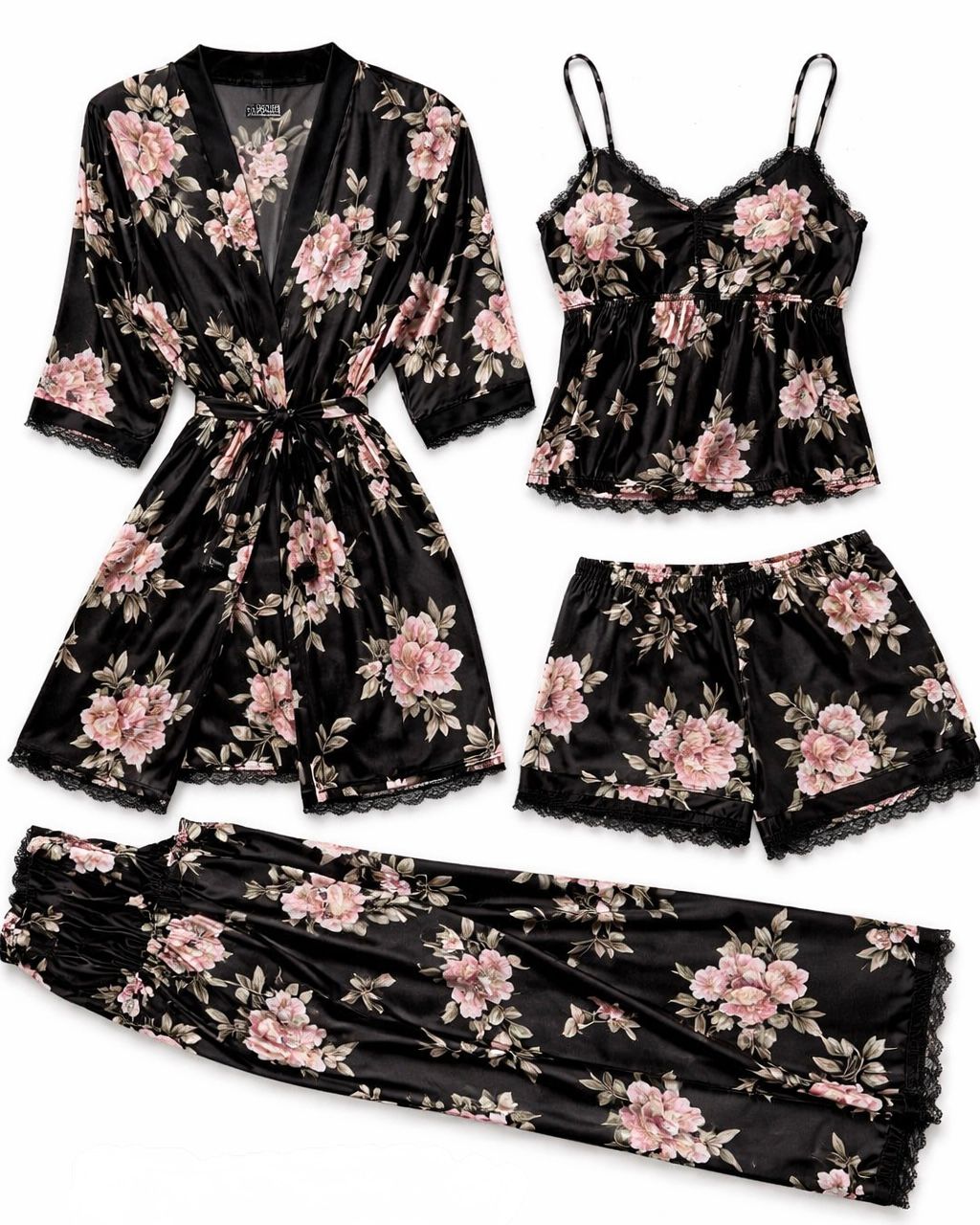 Black Digital Print 5 Piece Nightwear Set – Premium Women Sleepwear & Loungewear (USA)